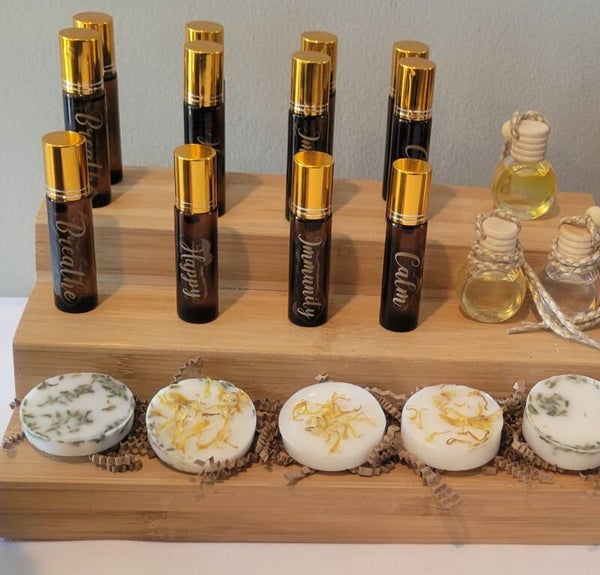 One of our favorite ways to use our oils is in roller blends! This is a wonderful way to create custom blends based on your needs, and topical application of oils is a great way to support the physical body. Simply apply the pre-diluted roll-on to the areas of concern for a quick and easy way to experience fast, natural relief and comfort. For general and emotional support, swipe along wrists, back of neck, behind ears, bottom of feet.